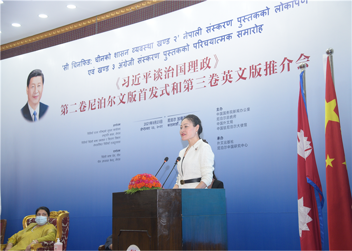 班达里为《习近平谈治国理政》第二卷尼泊尔文版新书揭幕