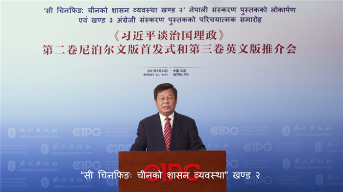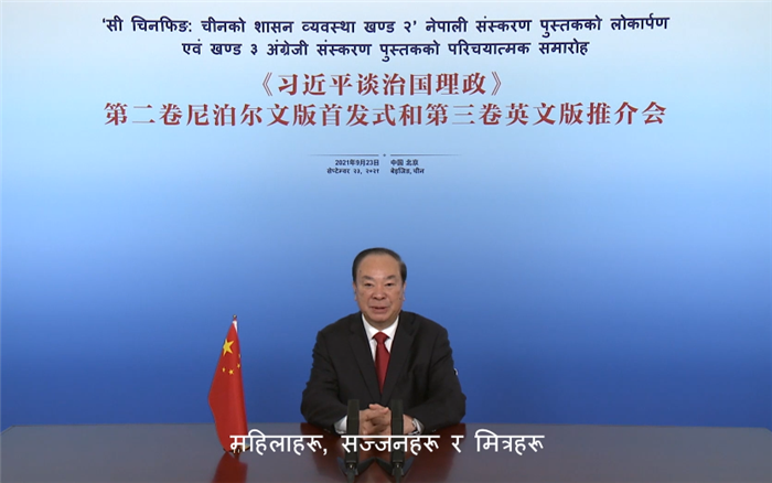 尼泊尔总统班达里出席活动并致辞,中共中央政治局委员、中宣部部长黄坤明,中国外文局局长杜占元分别发表视频致辞。中国驻尼泊尔大使侯艳琪、尼泊尔中国研究中心执行主席巴特拉伊等各界人士参加了当天活动。