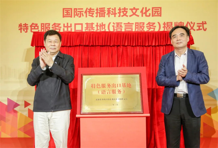 杜占元、陆彩荣为特色服务出口基地(语言服务)揭牌