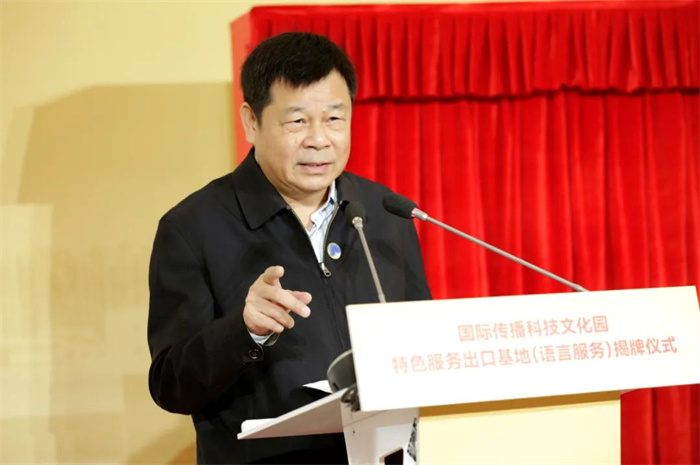 杜占元对国际传播科技文化园特色服务出口基地(语言服务)揭牌表示祝贺。他指出,中国外文局作为对外文化贸易工作联系机制的成员单位,既有参与宏观管理的责任,也是重要的支持和落办单位,承担着指导与建设的双重责任。此次国际传播科技文化园获批国家首批特色服务出口基地(语言服务),是外文局进一步落实习近平总书记贺信和回信精神的具体举措,体现了国际传播科技文化园在国际传播、科技、文化交流特别是对外文化贸易中的重要定位和使命,擘画出外文局未来产业发展的新方向,将成为国际传播事业的战略支撑和新增长点。