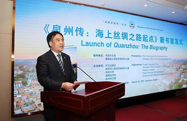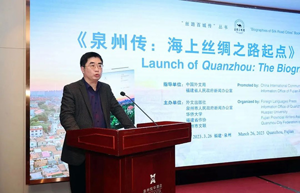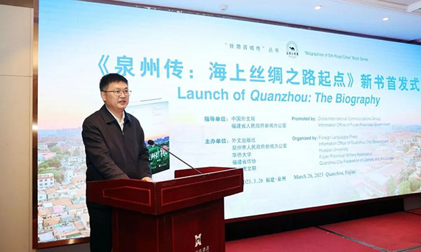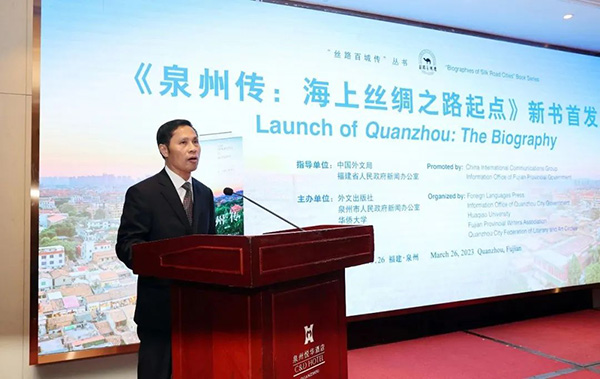 3月26日,由中国外文局、福建省政府新闻办指导,外文出版社、泉州市政府新闻办、华侨大学、福建省作协、泉州市文联主办的《泉州传:海上丝绸之路起点》(以下简称《泉州传》)新书首发式在泉州举行。