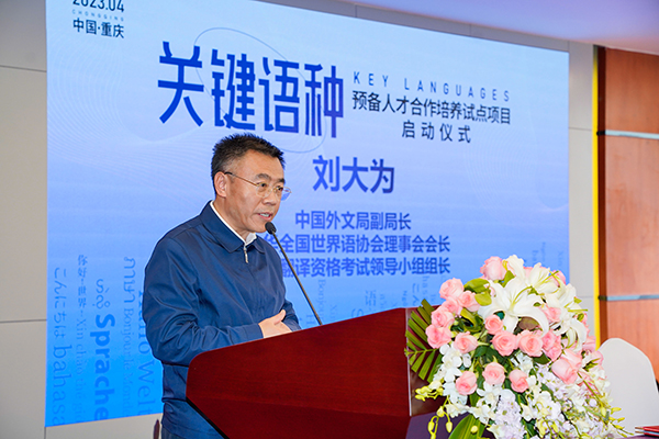 刘大为指出,党的十八大以来,以习近平同志为核心的党中央高度重视国际传播工作,作出一系列重大决策部署。加强关键语种预备人才培养是落实中央三部委关于全国翻译人才队伍建设有关规划的具体措施,是助力提升国家翻译能力、解决非通用语种人才短缺问题的有益探索,关键语种预备人才合作培养试点项目前期调研扎实、准备充分,此刻启动正当其时。他要求,关键语种预备人才合作培养工作要以有效服务国家大局为发展方向,紧密结合重庆市突出优势和特色,创新人才培养的思路举措,汇聚多方优势资源,形成推动关键语种预备人才培养的整体合力,为加强国际传播能力建设提供坚实人才支撑。