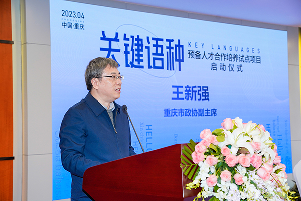 王新强指出,语言是沟通交流的基础,随着中国逐渐走近世界舞台的中央,对外讲好中国故事、传播好中国声音变得尤为迫切。关键语种预备人才合作培养试点项目的启动,不仅能够助力国家继续深化对外交往,也将为重庆市加快建设中西部国际交往中心和西部陆海新通道提供重要的人才支撑。他强调,重庆将积极探索关键语种预备人才全链条培养新模式,努力推动形成跨层级、跨部门、跨区域的合作培养机制,发挥重庆市的资源特色和区位优势,形成可复制和推广的经验做法,为我国翻译人才队伍建设贡献更大力量。