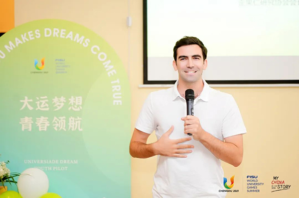 为迎接在成都举办的第31届世界大学生夏季运动会,6月14日,以“大运梦想·青春领航”为主题的“遇见成都——国际青年第三只眼看大运”活动在电子科技大学举办。高佑思(Raz,以色列)、星悦(Lila,美国)、朴大一(PARK DAEIL,韩国)、柯鲁瀚(Jack Klumpp,美国)、艾薇(Evy Pinero,美国)等来自世界各地的知名外籍博主以及多位来自电子科技大学的大运会志愿者代表,现场分享了自己眼中的中国故事、成都故事,以及对成都大运会的印象与期待,以赛为媒促进中外文化交流。