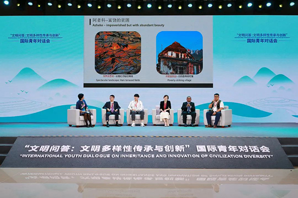 文明问答圆桌对话环节中,意大利中意青年会会长陈铭,十三届全国青联委员,十二届、十三届云南省政协委员袁荣,韩国驻华大使馆—中韩文化交流青年使者崔瑜珉,红河州优秀青年代表、红河州侨联主席张嫦立足国际青年视角,围绕新时代文明交流互鉴、文明传承与创新等议题展开交流与讨论。