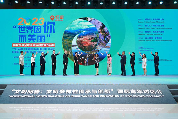 本次活动还举行了“世界因你而美丽·红河”影像故事全球征集活动优秀作品展启动仪式?!笆澜缫蚰愣览觥ず旌印庇跋窆适氯蛘骷疃判阕髌氛菇?023年6月持续至12月,由中国外文局国际传播发展中心、红河州人民政府新闻办公室主办,红河书院支持?;疃诩洌型饧伪龉餐喂哿吮敬握估?。