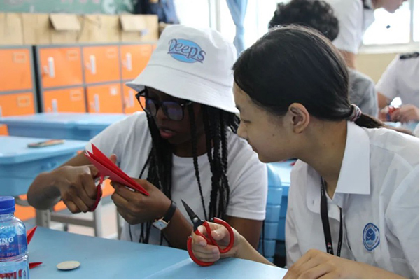 在非遗文化课堂上,外籍青年们体验了历史悠久的剪纸艺术。剪纸老师以独具文化特色的“百变团花”为例,让外籍青年们初步感受了窗花剪纸的艺术——从纸的折叠到剪刀的运用,逐一讲解、示范,大家听得专注,学得认真,收获了一幅属于自己的充满胶东地域文化特色的剪纸作品。
