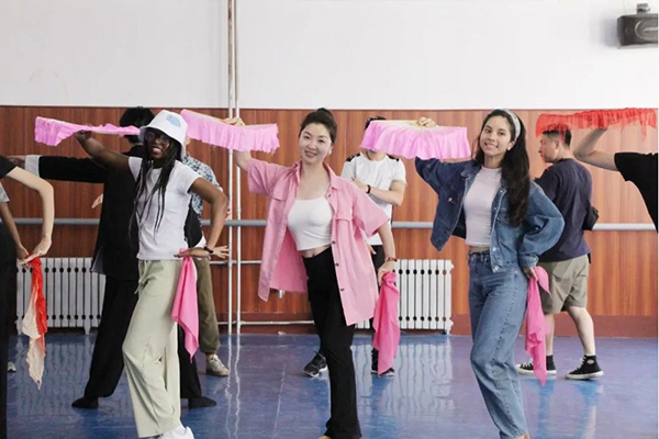 外籍青年们还欣赏了一堂别开生面的中国舞蹈课。烟台艺术学校的同学们呈现了一段极具烟台本地非遗文化特色的表演——拥有500多年历史的海洋秧歌。露茜说:“海洋秧歌的表演形式令人震撼,让我近距离感受到中国文化的博大精深?!痹诜且盼幕腥说闹傅枷?,艾薇和露茜学习了海洋秧歌表演中的代表性动作,艾薇表示,与她所擅长的拉丁莎莎舞不同,中国舞更加含蓄唯美,既热烈又奔放,尽显中国文化多元一体的包容性。