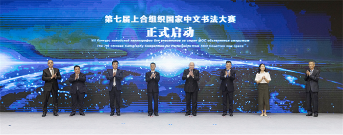 现场嘉宾共同启动“第七届上合组织国家中文书法大赛”