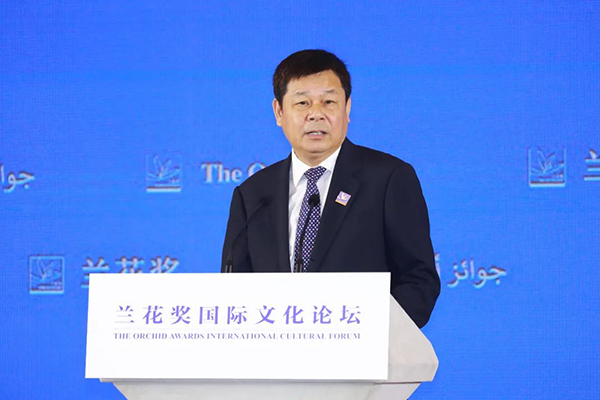 中国外文局长期致力于促进中华文化国际传播和中外文明交流互鉴。近年来,我们积极发挥文化传播和人文交流特色优势,精心打造“国际交流对话平台”,大力实施中华文明国际传播工程,策划组织金砖国家治国理政研讨会暨人文交流论坛、中拉文明对话论坛、中法文明对话会、“北京—东京”论坛、中国—东盟媒体智库论坛等一系列人文交流活动。今天我们举办兰花奖国际文化论坛,就是要更好地搭建深化友谊、加强交流、携手合作的新平台。