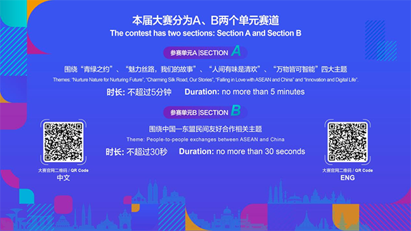 本届大赛主题为“心心相连 筑梦未来”,分为两个参赛单元,征集主题包括“青绿之约”“魅力丝路,我们的故事”“人间有味是清欢”“万物皆可智能”以及中国—东盟民间友好合作等相关主题,旨在通过多形式、多语种的短视频作品,促进中国与东盟各国之间的人文交流,助力中国—东盟合作进一步深化。