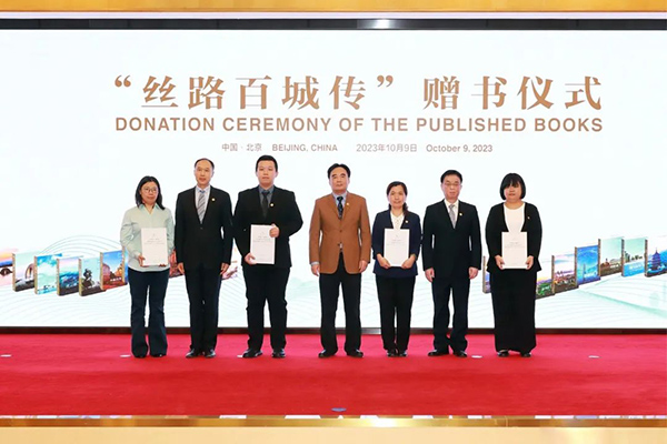 与会领导嘉宾向国家图书馆、首都图书馆、中联部当代世界研究中心、中国人民大学丝路学院等单位赠书