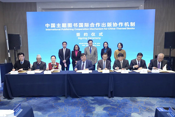 推进会上举行了“中国主题图书国际合作出版协作机制”扩员签约仪式,韩国、吉尔吉斯斯坦、巴基斯坦、匈牙利、保加利亚、肯尼亚、孟加拉国、老挝、乌兹别克斯坦、泰国、阿富汗、希腊和尼泊尔等13个国家的出版机构和研究机构代表完成了签约。