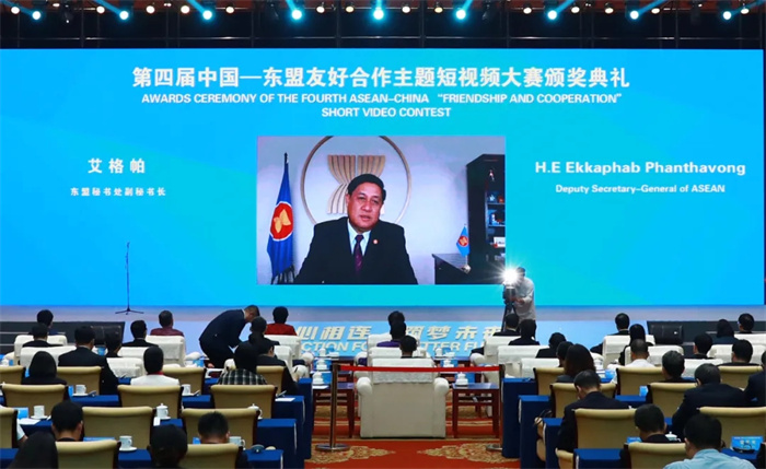 3月26日,第四届中国—东盟友好合作主题短视频大赛颁奖典礼在广西南宁举办。中国经济社会理事会常务理事、广西壮族自治区政协原主席陈际瓦,中国外文局局长杜占元,广西壮族自治区党委常委、宣传部部长陈奕君,广西壮族自治区人民政府副主席苗庆旺,中国驻东盟大使侯艳琪,外交部亚洲司参赞魏欣,国家广播电视总局国际合作司副司长燕旎,老挝驻华大使宋蓬,柬埔寨新闻部国务秘书霍恩庆威,东盟副秘书长艾格帕,缅甸常驻东盟代表昂苗敏,柬埔寨新闻部部长办公厅副主任兼新闻部顾问唐坤宇梁等主要嘉宾出席活动。中国外文局副局长陆彩荣主持颁奖典礼致辞环节。