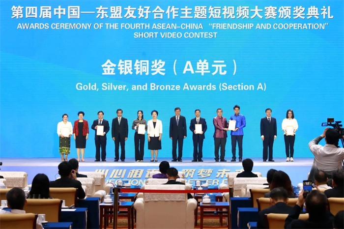 出席第四届中国—东盟友好合作主题短视频大赛颁奖典礼的中外嘉宾合影