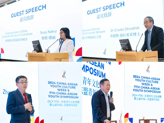 柬埔寨商务部副国务秘书斯维·娜丽(Svay Nakry),东盟大学网络执行主任乔提斯·迪拉希蒂(Choltis Dhirathiti),北京大学区域与国别研究院副院长、北京大学国际关系学院教授翟崑,擘雅集团董事长刘瑞旗等在致辞中表示,年轻一代将会是中国—东盟合作的主要推动者,中国—东盟青年文化周有力地促进了中国—东盟人文交流,希望青年代表们充分利用这个宝贵的机会加强沟通与合作,为中国—东盟关系注入活力。