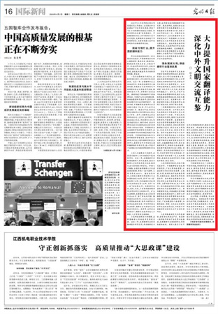 4月2日,《光明日报》刊发中国外文局局长、中国翻译协会会长杜占元署名文章《大力提升国家翻译能力 深化中外文明交流互鉴》。以下为文章全文: