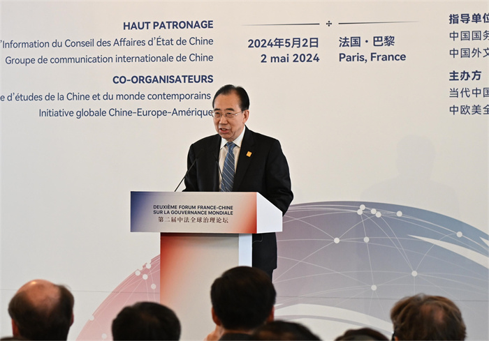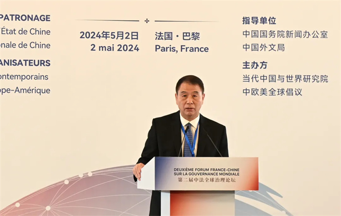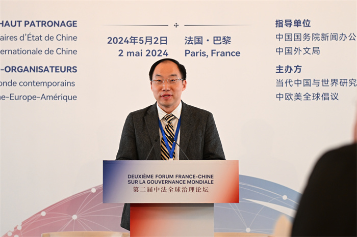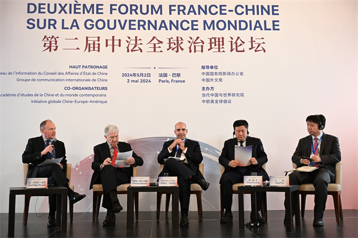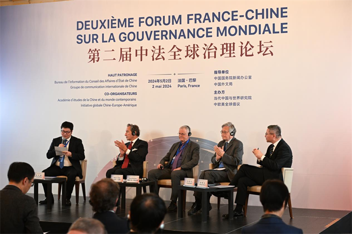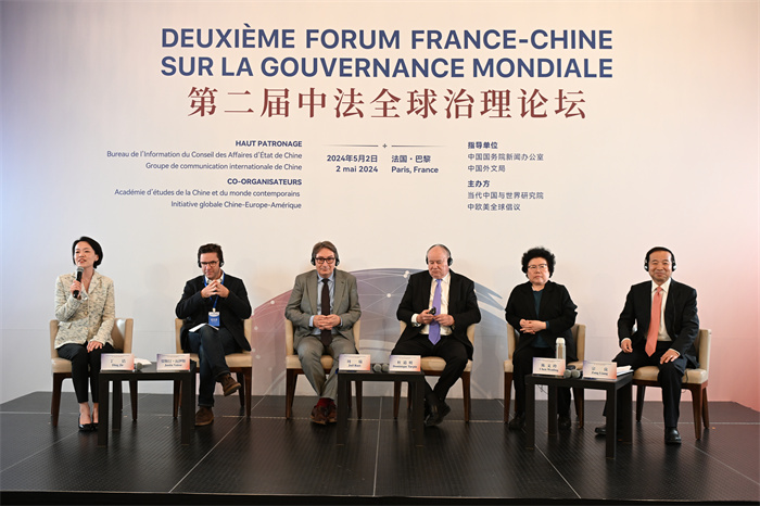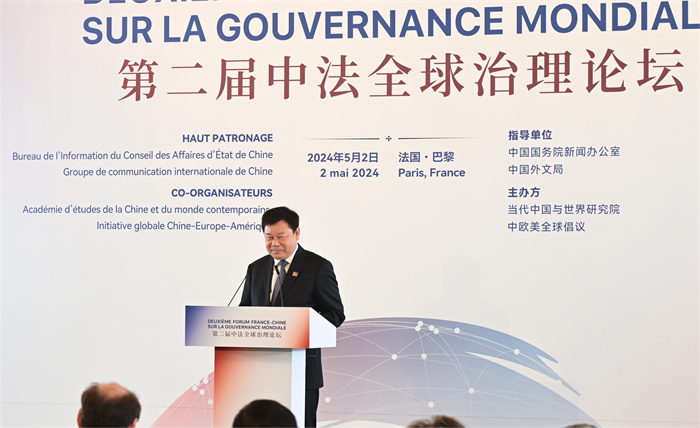 5月2日,由国务院新闻办公室、中国外文局指导,当代中国与世界研究院联合中欧美全球倡议共同主办的“第二届中法全球治理论坛”在法国巴黎举办。来自中法两国的百余位专家学者围绕“深化全球治理改革共建多边主义未来”这一主题展开深入研讨交流。