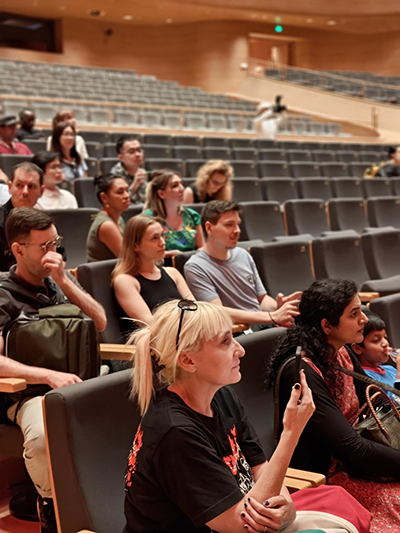 步入园区,一座设计前卫、造型独特的建筑吸引了外籍专家们的目光,这便是以古运河粮仓为灵感设计的北京艺术中心。在中心内部,讲解员详细介绍了音乐厅、歌剧院、戏剧厅等建筑空间的构造特点与美学价值。其独特的“化整为零”布局设计,旨在最大限度降低能耗,践行绿色环保理念,同时与城市公共交通系统紧密相连,使三大建筑形成有机统一的整体。自开放以来,该艺术中心已成为市民享受多元艺术活动的重要场所,成为深受群众喜爱的艺术基地和“文化粮仓”。