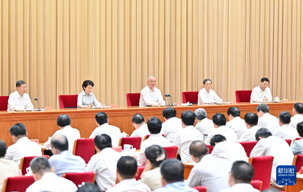 7月31日,中央和国家机关学习贯彻党的二十届三中全会精神、推动机关党建高质量发展座谈会在北京召开。中共中央政治局常委、中央和国家机关工委书记蔡奇出席会议,传达习近平重要指示并讲话。(新华社记者 岳月伟 摄)