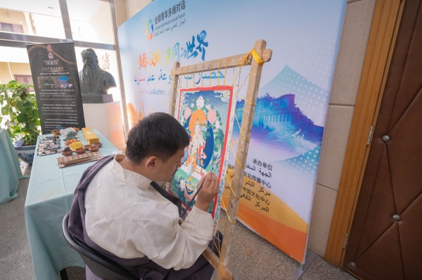 活动会场设置西藏摄影图片展,展示西藏的壮丽风光与风土人情,并邀请西藏大学艺术学院教师丹增平措现场进行唐卡绘画,展示具有鲜明民族特色和独特艺术风格的非物质文化遗产?;疃湎吨邪K角嗄甏砘勾戳司实奈鞑睾桶⒗栉璞硌?。