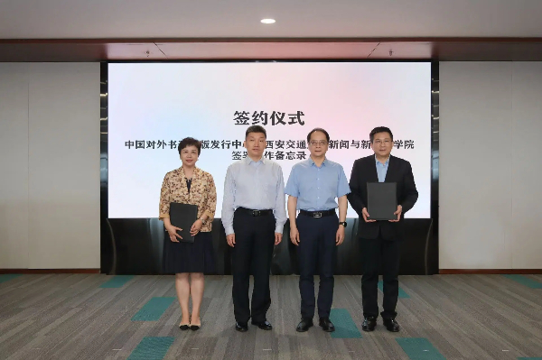 交流会期间,中国对外书刊出版发行中心与西安交通大学新闻与新媒体学院签署合作备忘录。此次合作将充分发挥双方资源优势,在联合打造特色国际传播新平台、企业国际传播、人才交流等领域加强务实合作,共同提升国际传播效能。