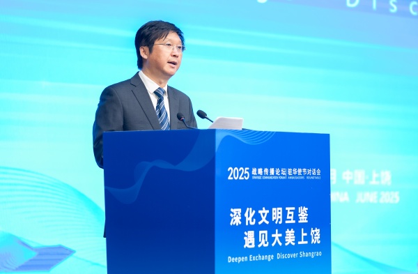 6月13日,以“深化文明互鉴 遇见大美上饶”为主题的2025战略传播论坛驻华使节对话会在江西上饶举行。中国外文局副局长、当代中国与世界研究院院长于运全,上饶市委副书记、市长邱向军等出席对话会。
