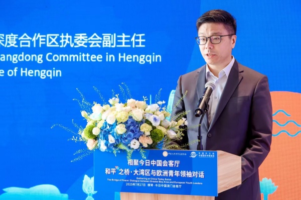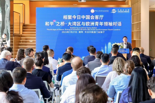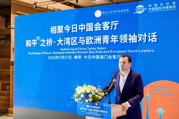 世界青年和平大会前夕,7月27日,相聚今日中国会客厅——和平之桥·大湾区与欧洲青年领袖对话活动在广东横琴粤澳深度合作区举办。
