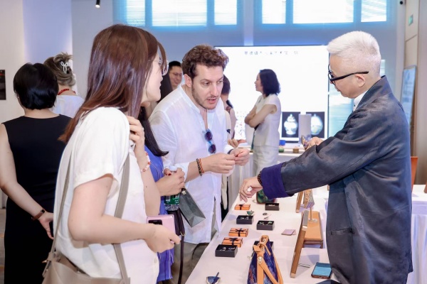 活动现场,今日中国澳门会客厅还专门设了小型非遗展览,邀请了钟家窑第四代传承人、青花花鸟非遗传承人钟志伟,景德镇市缘源陶瓷有限公司副总经理王季平,武汉理工大学艺术与设计学院博士生导师、陶瓷艺术设计大师龚余辉,濮绸非遗传承人代表戴金海,景泰蓝工艺画大师李伟平,紫禁城文化科技有限公司(阿联酋)CEO杨苑分享了非遗传承发展和对外交流的故事。
