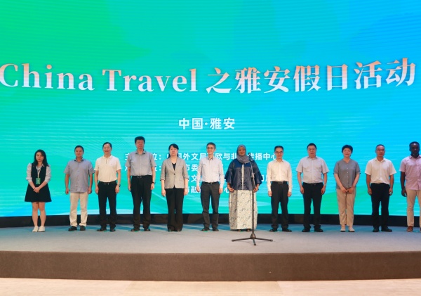 中国外文局总编辑高岸明,雅安市委常委、宣传部部长聂颖致辞;索马里驻华大使和丹·奥斯曼·阿布迪,北京大学中文系教授、民进中央常委、文化艺术委员会主任张颐武,中国作家协会主席团委员、中国诗歌学会会长杨克,挪威国家旅游局大中华区首席代表王宇发言。雅安市委副书记、市长彭映梅宣布“China Travel之雅安假日”正式启动。