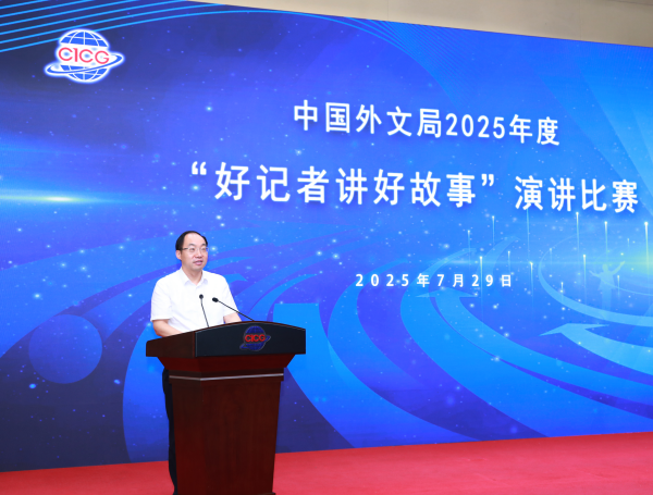 7月29日,中国外文局2025年度“好记者讲好故事”演讲比赛举办。中国外文局副局长于涛、于运全,局副总编辑李雅芳出席活动并担任评委。