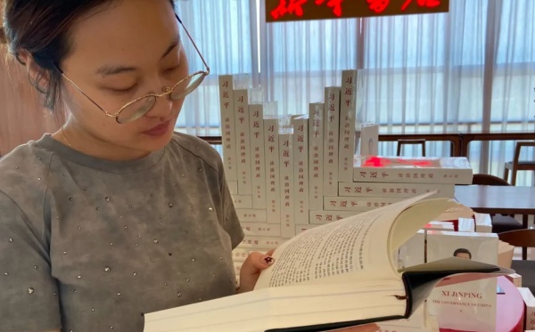 以下为《习近平谈治国理政》第五卷中英文版图书在江苏、安徽、湖北、河南、河北、山西、江西、贵州主要书店上架销售及读者阅读的场面。