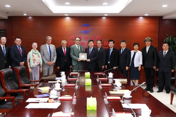 5月22日上午,中国外文局局长、第二届兰花奖评委会主任委员杜占元会见到访的第二届兰花奖外籍评委一行。中国外文局副局长、第二届兰花奖评委会副主任委员于涛,中国外文局副总编辑、中国对外书刊出版发行中心主任、兰花奖秘书处秘书长陈实参加会见。