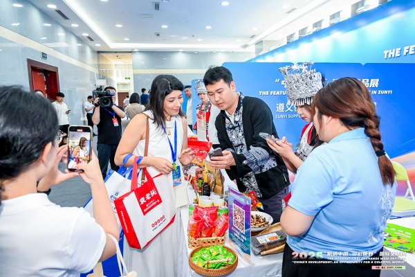 活动现场,与会嘉宾参观了“中国好物”遵义精品展,嘉宾通过辣椒红、山茶绿、酱香白以及多彩的非遗产品,感受丰富的遵义特色产业发展。