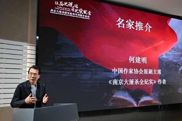 何建明分享了他创作《南京大屠杀全纪实》一书的背景、过程和感受。这本书以中国视角系统揭露了日军暴行,还被翻译成英语、日语、泰语、韩语、越南语、马来西亚语等文版。何建明表示,只有真正深入地了解南京大屠杀的史实,才能更加认识到今天仍要铭记历史的意义。如今的世界并不安宁,世界上和平的声音还不够多,中国是一个和平崛起的国家,我们有责任、有义务承担起这个使命。