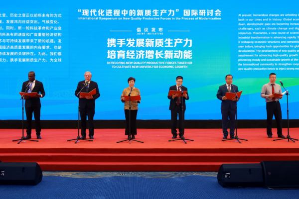 研讨会上,局副总编辑、中国对外书刊出版发行中心主任陈实,柬中友好青年之家副秘书长盛·索帕格纳等中外嘉宾联合发布“携手发展新质生产力,培育经济增长新动能”共同倡议。研讨会还设置了“现代化进程中的新质生产力:政策与实践”“现代化进程中的新质生产力:比较与借鉴”“现代化进程中的新质生产力:AI时代的智能交互生态”三个平行分论坛。