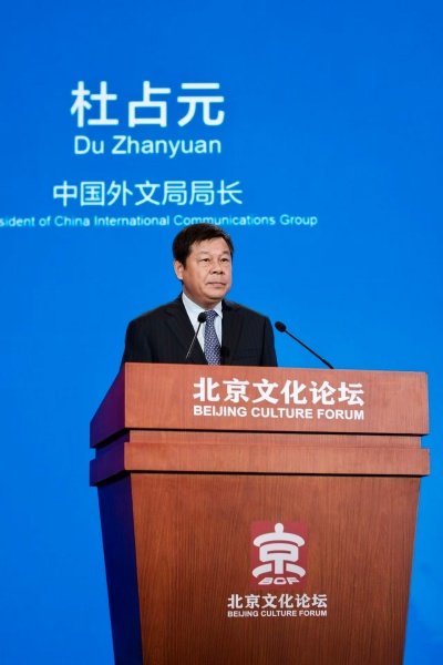9月23日,《从倡议到实践:2024中外文化交流报告》在2025北京文化论坛发布。中国外文局局长杜占元在论坛重要成果发布专场活动环节介绍报告主要内容。
