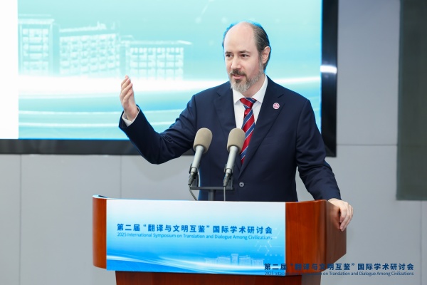 程维解读了本次会议主题,并介绍了北京第二外国语学院自创办以来,在培养中外人文交流人才、服务国家对外战略方面作出的不懈努力。她提到,在数智时代,学校将继续探索翻译与文明互鉴的新路径、新机制,为不同文明的交流对话注入源源不断的动力与智慧。