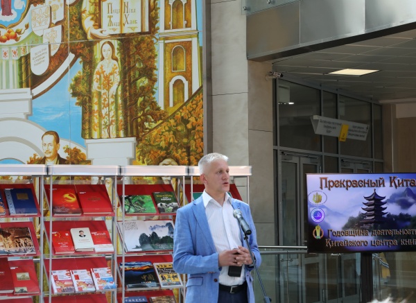 当地时间8月28日,“大美中国”白俄罗斯中国图书中心成立一周年庆?;疃诎锥砺匏故锥济魉箍司傩小V泄馕木指本殖び谔危泄ぐ锥砺匏故构菸幕卧尴墓庠?,白俄罗斯国家图书馆副馆长柳德米拉·维索茨卡娅、维克多·普什倍特科,白俄罗斯作家协会副会长阿列克谢·切洛塔等中外嘉宾约100人出席活动。